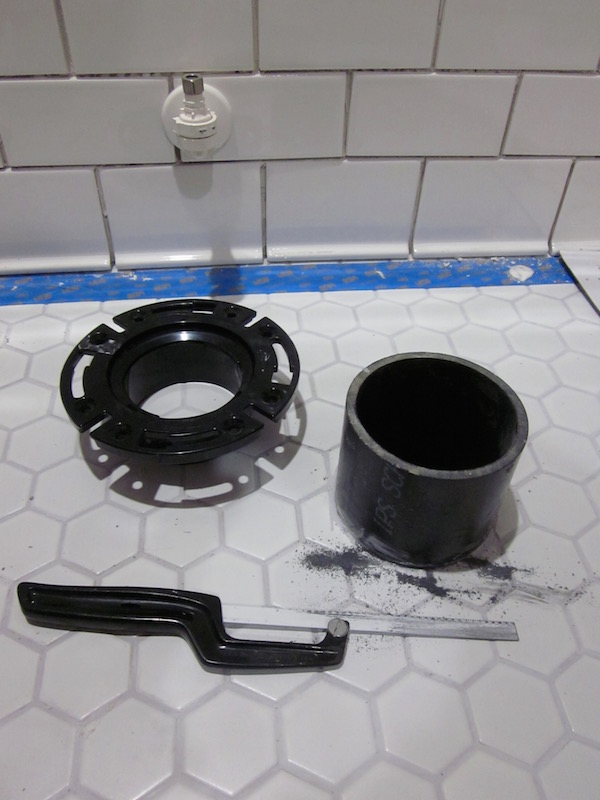 Mortar mix uneven floor toilet flange.